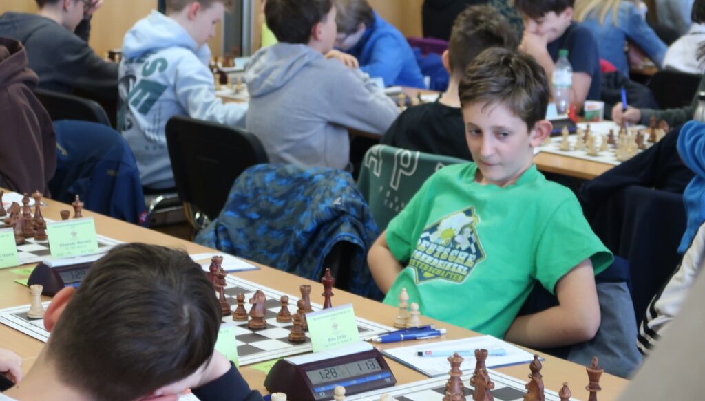 Mika war nach den Erfolgen der letzten beiden Jahre (Sachsenmeister U10 2024, Vizemeister U12 2025) neben Laura mit den größten Ambitionen gestartet. Nach DWZ auf Platz 1, nach Elo auf Platz 3 der Setzliste geführt, konnte er diese jedoch leider nicht ganz erfüllen. Zwar wurde gegen deutlich schwächer bewertete Gegner zuverlässig gesiegt, doch gab es in den Runden 2-5 nur 3 Remis und eine verdiente Niederlage. Er tat sich schwer, Chancen zu erzwingen, wenn der Gegner diese nicht leichtfertig gewährte, besonders wenn man dafür mal einen Bauern hätte opfern müssen. Nach diesem Zwischentief kam es nicht mehr zu Partien gegen die späteren Meister und Vizemeister dieses Jahres, so dass trotz Punktgleichheit mit Platz 3 am Ende die Zweitwertung „nur“ Platz 5 und die verpasste Qualifikation zur DEM heraussprang. Pfingsten zu Hause zu verbringen ist aber sicherlich keine allzu schlimme Alternative.