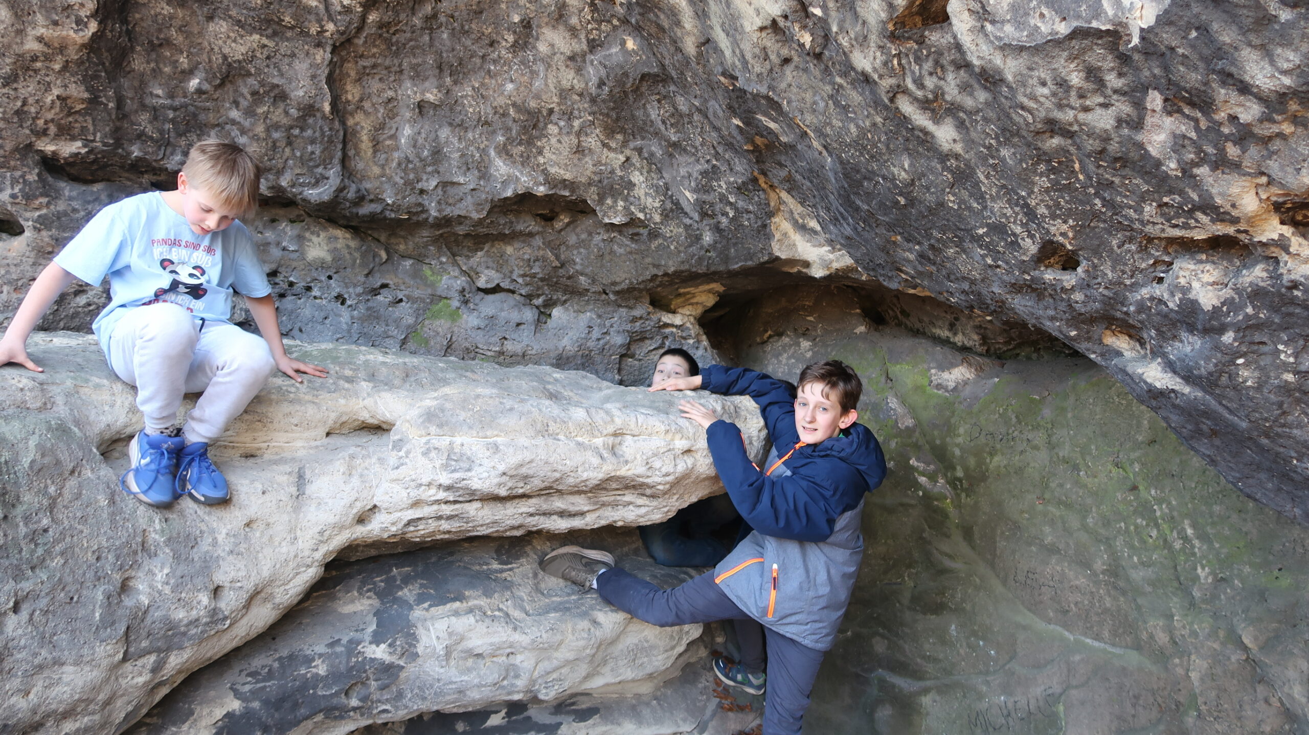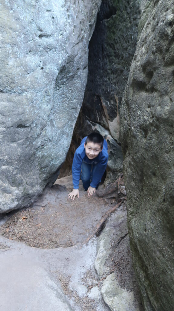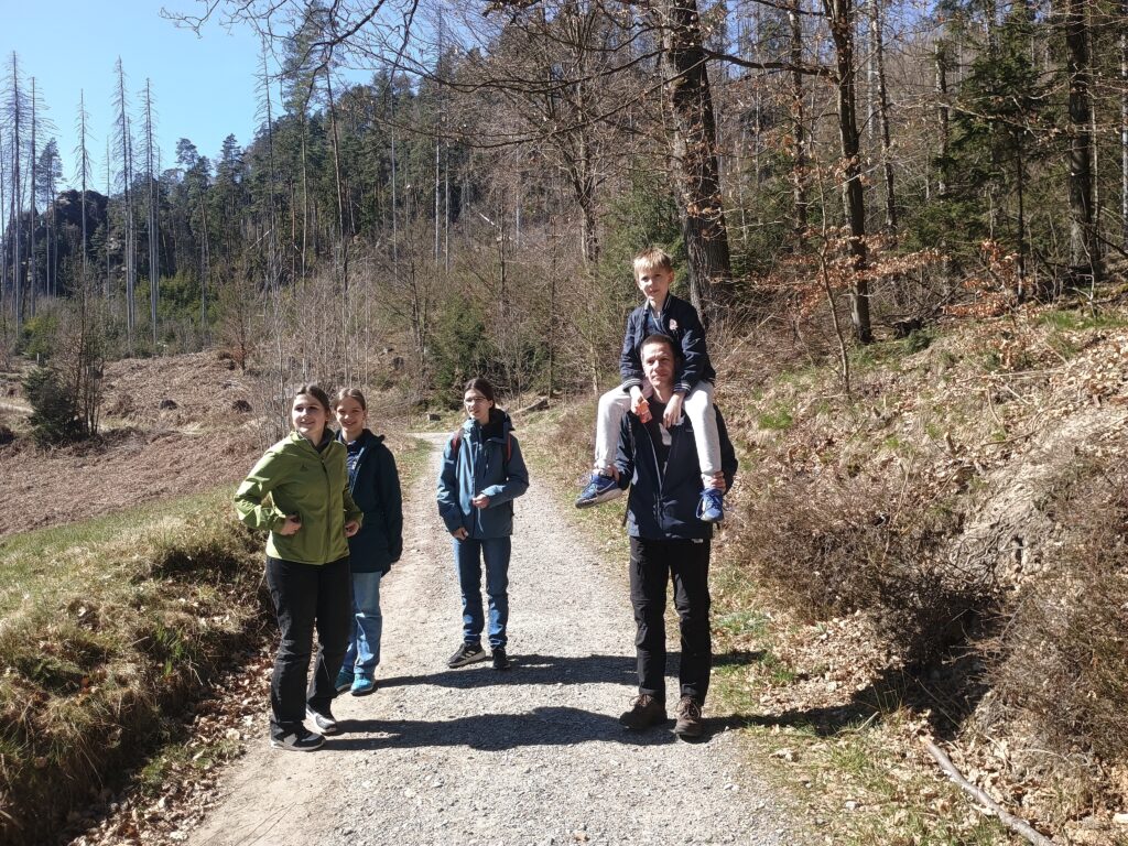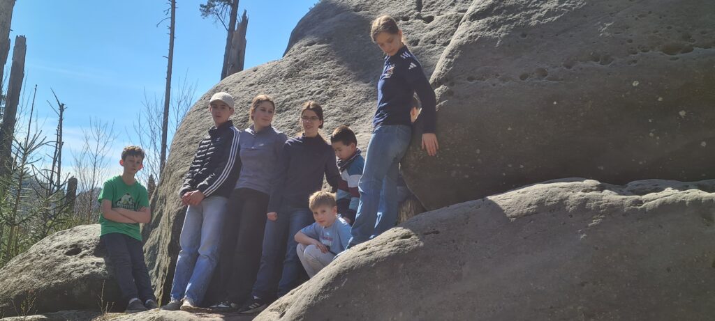 Neben dem Schach als Hauptsache bot besonders der Donnerstag Gelegenheit zur Abwechslung. Der sonnigste Tag der Woche dort, ein freier Nachmittag, alle Mann und Frau gestärkt von Antonins Pandageburtstagstorte ging es ins Kirnitzschtal zur traditionellen Wanderung. Waghalsige Kletteraktionen (Alan: „Hurra, wir alle haben überlebt!“), Höhlenmalereien, beeindruckende Ausblicke in der Natur und das Gefühl, für einen ordentlichen körperlichen Ausgleich zur Sitzerei am Brett gesorgt zu haben. Laura und Marie waren auch rechtzeitig zum verpflichtenden Anti-Doping-Vortrag wieder zurück. Und wenn die kurzen Beine müde wurden, fand sich notfalls ein bereitwilliges Reittier für die anstrengende Strecke.