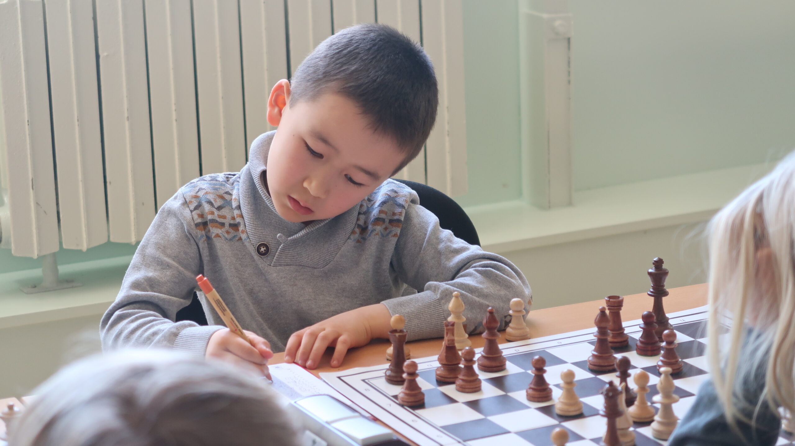 Während die Jugend sich der Schachpraxis widmete, arbeiteten Becky und Susi daran, unseren Vereinskids auch zukünftig Erfolge ermöglichen zu können. Mit undankbaren Arbeitszeiten – weniger Pausen als die Spieler und keinem freien Nachmittag – mussten besonders Multitaskingfähigkeiten bewiesen werden. Ein Auge auf den Dozenten vorne, ein Auge zum Livebrett bei Mika, Laura und Marie und ein Auge auf die Panda-Malvorlage für Antonins Geburtstag. Da wäre jeder Mann heillos überfordert.