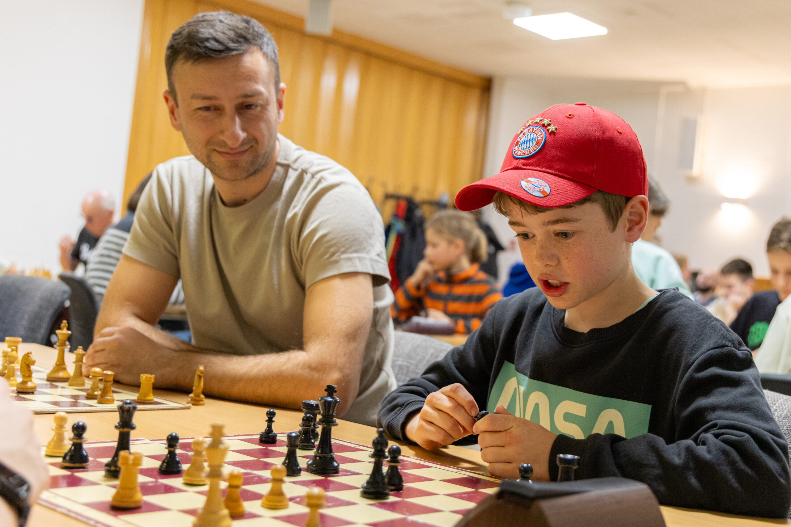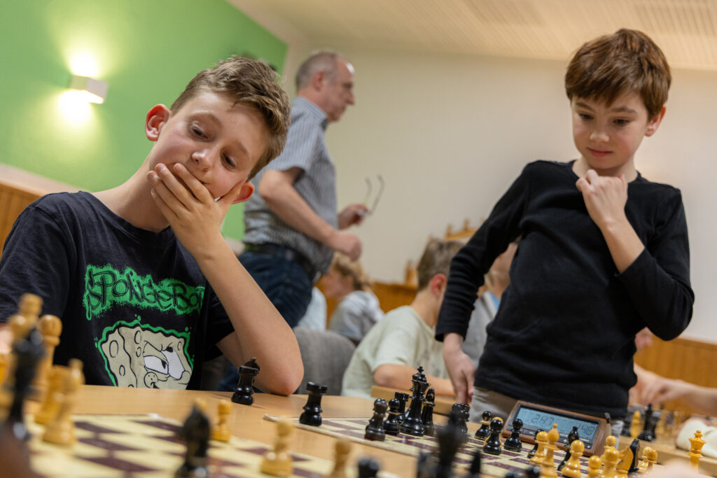 Am Samstagabend stellte das traditionelle Blitzturnier den schachpraktischen Höhepunkt dar. Aufgeteilt in 3 Gruppen nach Spielstärke und Alter waren fast alle anwesenden Vereinsmitglieder am Start. Im Miniturnier (Altersbereich kurz vor 10 bis kurz nach 60) setzte sich in einem spannenden Turnier am Ende Kevin vor Till und Eddie durch und holte nach Silber im Tandem seine zweite Podiumsplatzierung.