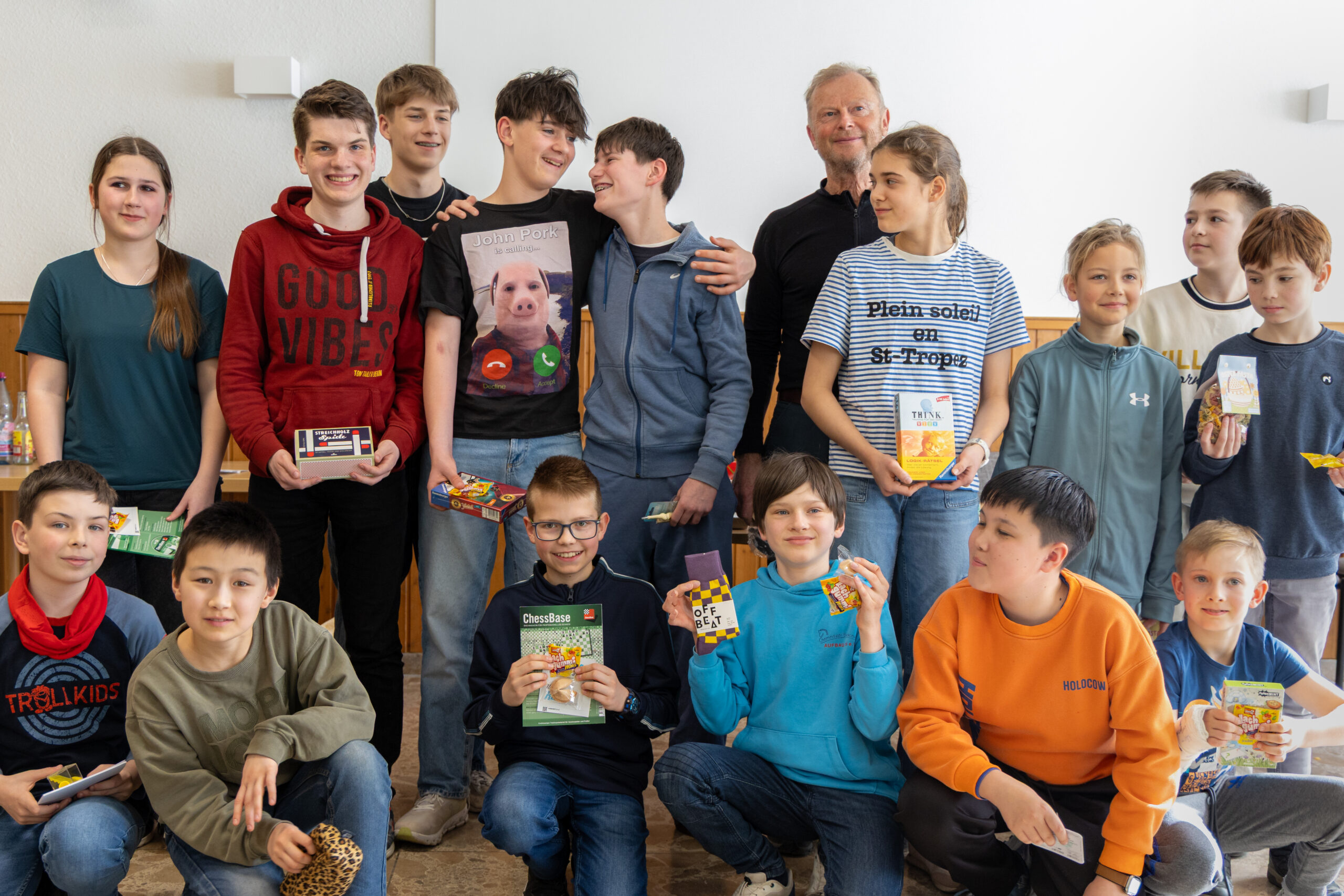 Mangels potenter Sponsoren – Jan Henric Buettner ist offenbar mit Freestyle-Schach in Weissenhaus und der Förderung von Vincent Keymer ausgelastet – konnte der Preis leider nicht in Euro, sondern nur in Smarties und Gummibären ausgezahlt werden. Gerade den jüngeren Teilnehmern war das aber auch recht. Und schon in der ersten Spielrunde hat es das Team mit Marie, Laura, Paula und Viktoria tatsächlich bis zum Ende durchgehalten und die Million im wahrsten Sinne des Wortes eingesackt!