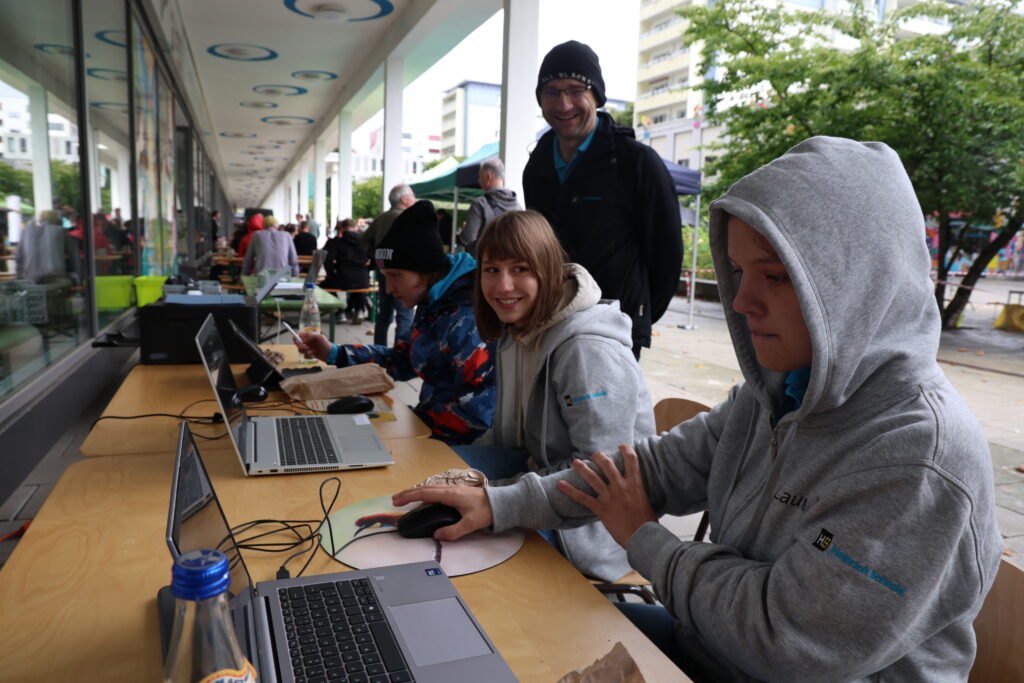 Schach im Programm der Kulturhauptstadt? Ja, tatsächlich. Straßenschach International auf dem Rosenhof. Da müssen wir hin! Am 23. August – ein ganz normaler Samstag im Spätsommer. Spätsommer? Das Wetter hatte anderes vor. Zuerst graue Regenwolken und kühle Temperaturen, später leichte Wolken und etwas Sonnenschein. Trotzdem waren unsere neuen Bundesligajacken fleißig im Einsatz und haben sich kältebewährt.