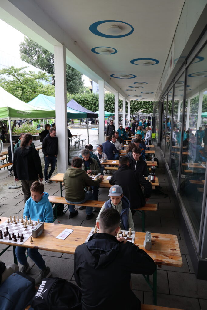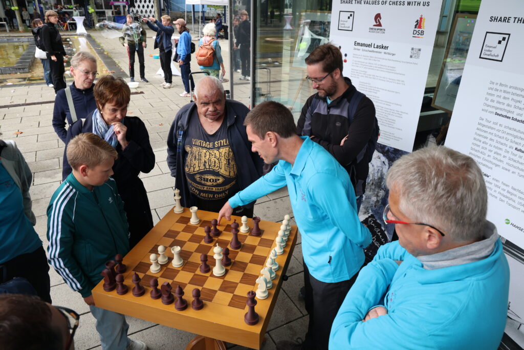 Wer nicht am Turnier teilnahm, hatte die Möglichkeit für freie Partien. Zahlreiche Passanten und Schachspieler nutzten dies. Teilweise mit akrobatischen Zügen. 🙂