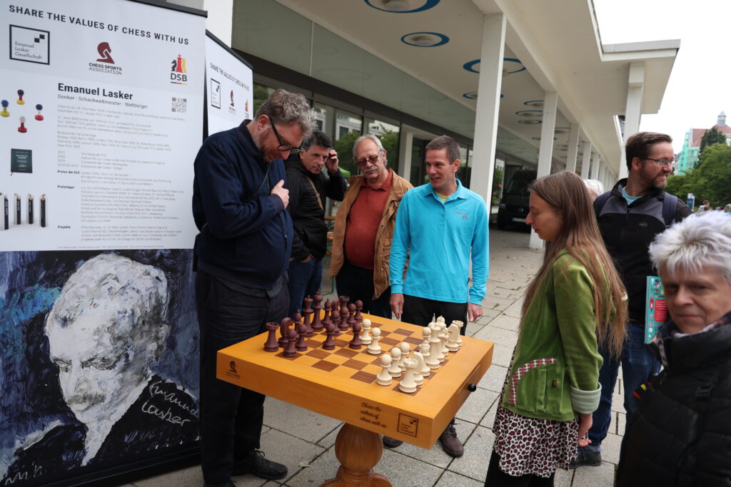 Ein großes Highlight war der Emanuel-Lasker-Tisch, der von der ELG auf Tour durch Deutschland geschickt, aktuell Station in Chemnitz macht. Er weckte die Aufmerksamkeit zahlreicher Zuschauer. Einige forderten Norman heraus, andere spielten eine Partie untereinander. Immer begleitet von sehr erhellenden und auch lustigen Kommentaren.