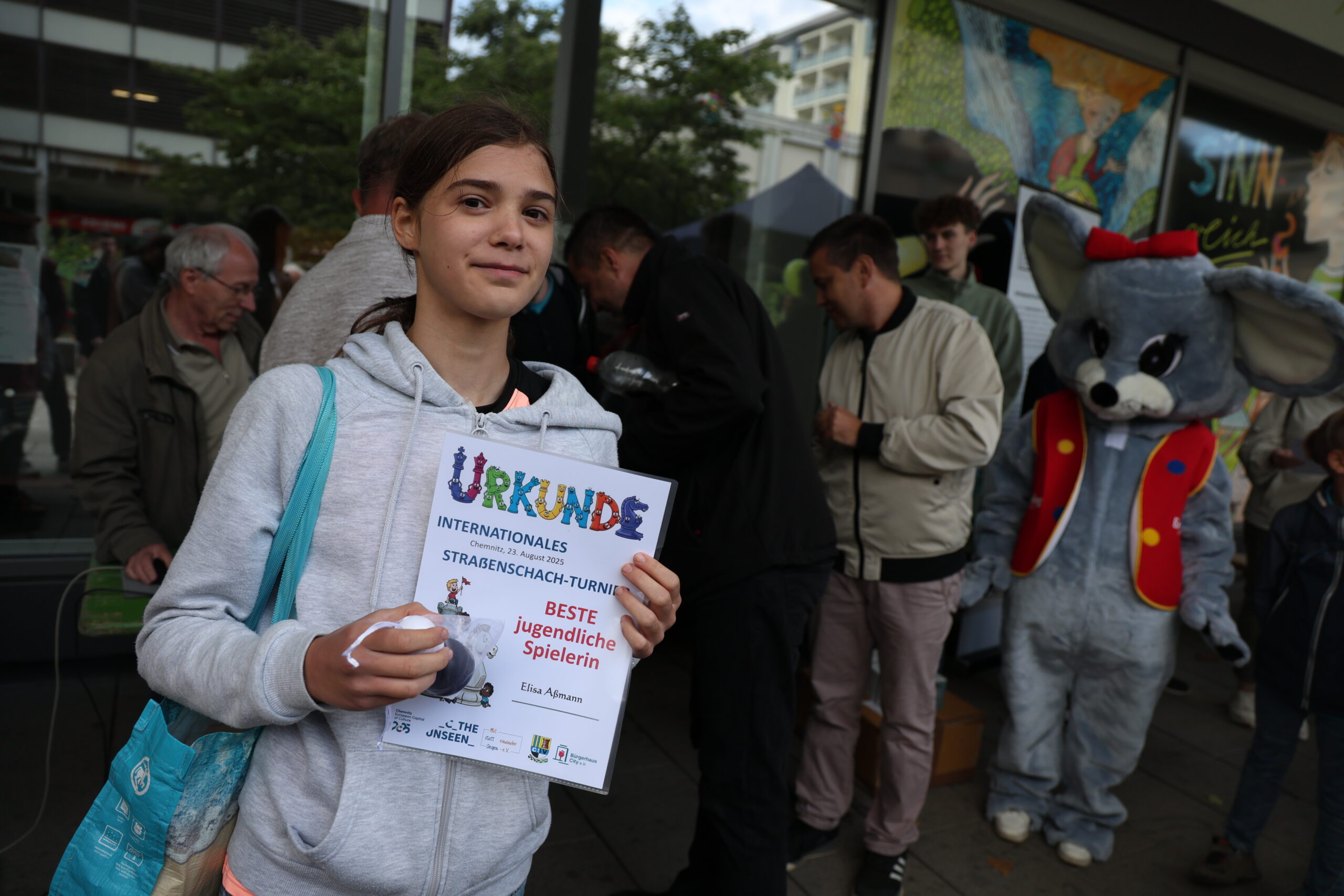 Paula sicherte sich den 1. Platz, gefolgt von Laura auf Platz 2. Moritz landete auf dem 4. Rang. Als Preis gab es einen Lasker-Bauern für jeden, überreicht von Ronny Kienert (Vorsitzender des MsG).