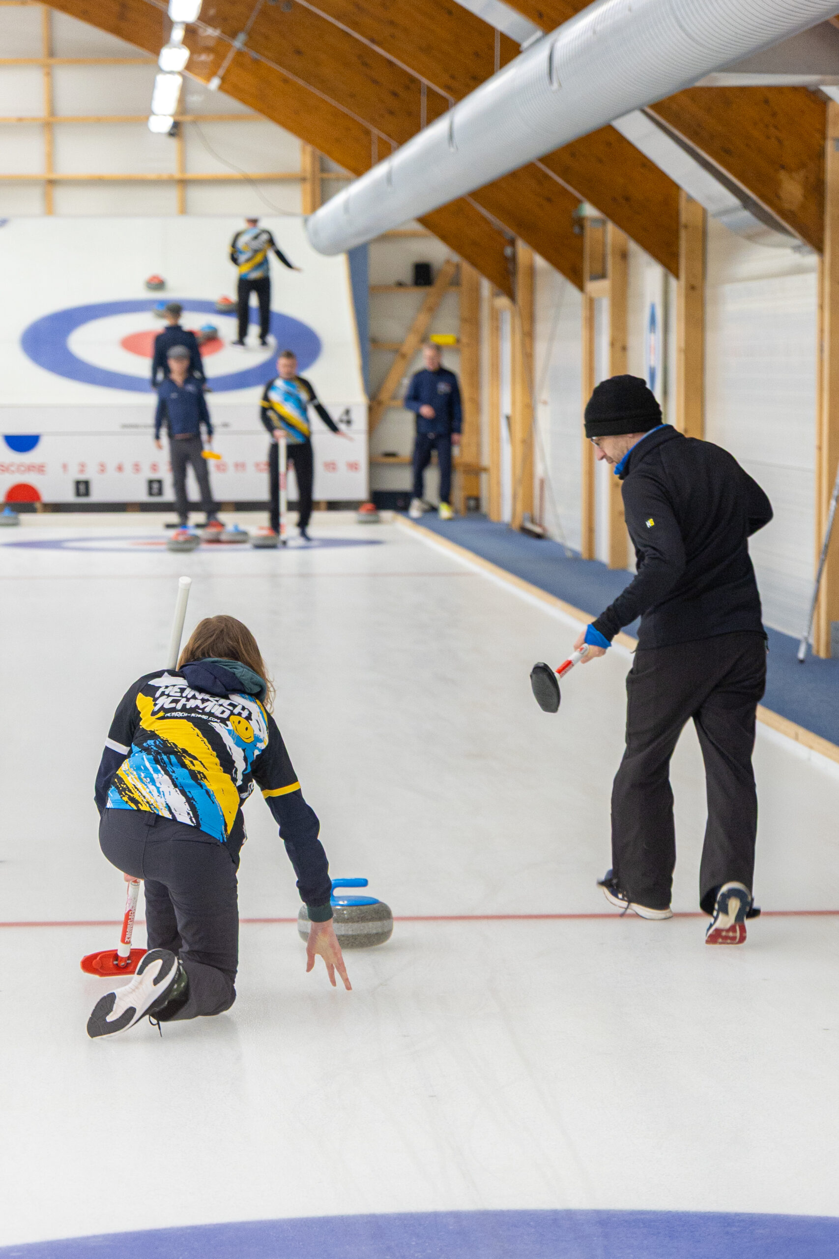 Der Reihe nach: Das Wochende in Hamburg begann bei typischem norddeutschen Nieselwetter schon spektakulär mit…. Curling. Danny und Moritz spielten zufällig am selben Wochenende in Hamburg die Deutsche Betriebsmeisterschaft im Curling für Heinrich Schmid. Das konnten wir uns natürlich nicht entgehen lassen und verfolgten das erste Match live vor Ort. Wirklich sehr spannend. Es gab viel Szenenapplaus für unser Team. Und am Ende ging das Match trotz Führung vor dem letzten End noch mit einem Stein an das Team aus Hamburg. Sehr schade.